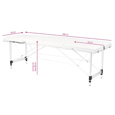 KOMFORT 3 SEGMENTET FOLDBAR MASSAGEBRIKS I ALUMINIUM HVID 59 x 186