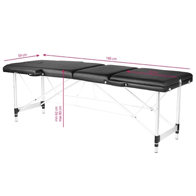 KOMFORT 3 SEGMENTET FOLDBAR MASSAGEBRIKS I ALUMINIUM SORT 59 x 186
