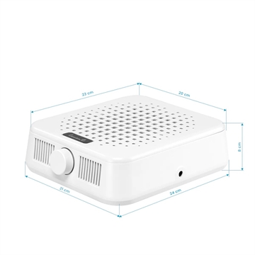Arbejde med en neglefil producerer en betydelig mængde støv, som kan udgøre en sundhedsrisiko, hvis den udsættes for den i længere perioder. Derfor er det værd at investere i en effektiv støvsuger i en neglesalon. Denne støvsuger renser effektivt luften, forbedrer hygiejnen og sikrer komfort for både stylisten og kunderne. Takket være en højhastighedsventilator udsuger apparatet hurtigt og effektivt støv, der genereres under manicuren, og leder det direkte til effektive filtre , der fanger selv de mindste partikler.